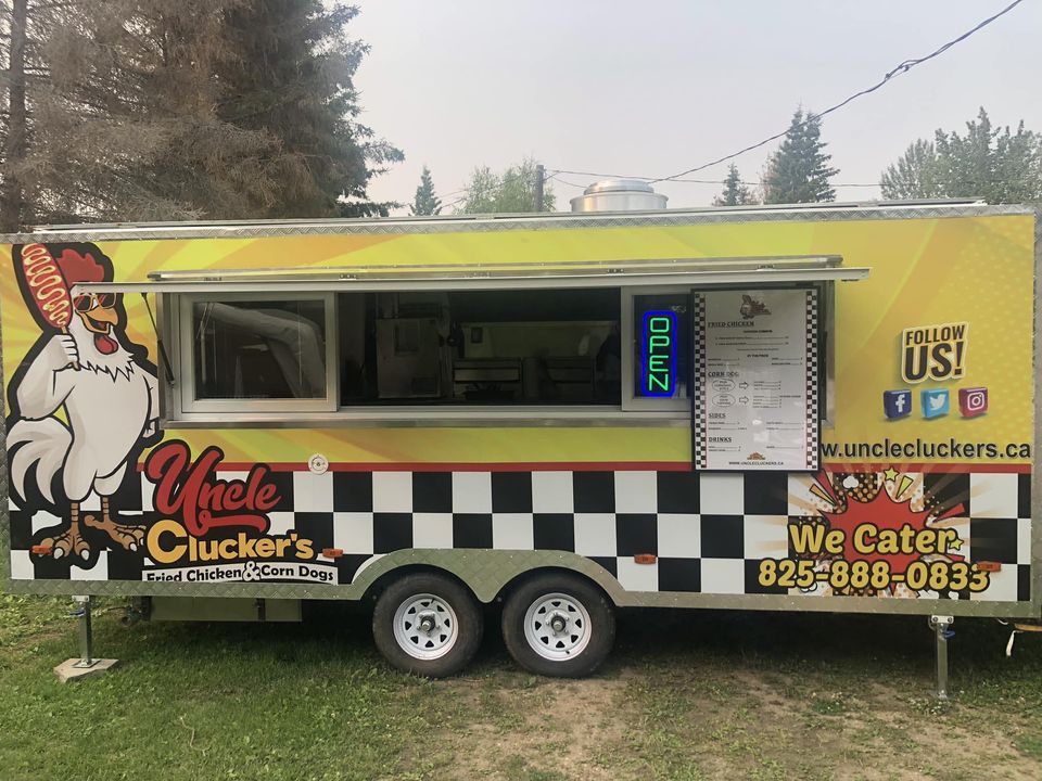 Uncle Clucker’s, a family-owned food trailer, offers delicious fried chicken and corn dogs. You can find them at Athabasca River Front Park throughout the summer months!